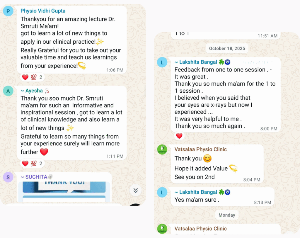Get personalized guidance on clinical doubts and career growth from Dr. Smruti to help you progress confidently in your physiotherapy journey.
